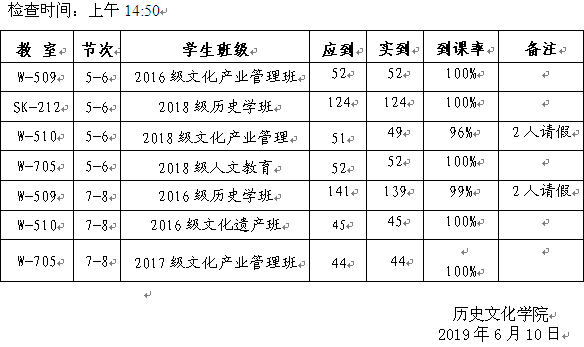 为进一步规范教学管理,维护正常教学秩序,确保教学工作顺利开展,2019年6月10日,beat365教学自查小组对上课班级师生到课情况进行了检查,现通报如下: