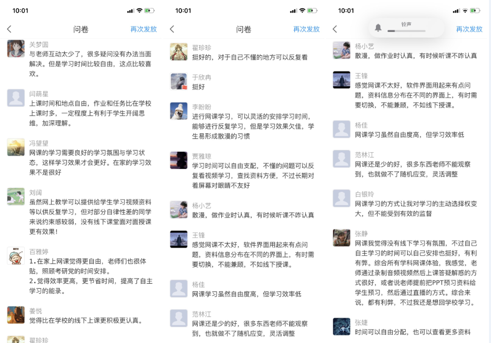 网上授课进入到学期中时,为了响应同学们从开始就想看直播课的呼声,更为了防止学生居家自主学习久了之后产生懈怠情绪,邹维一老师还尝试进行了网上直播授课。直播前的问卷调查: