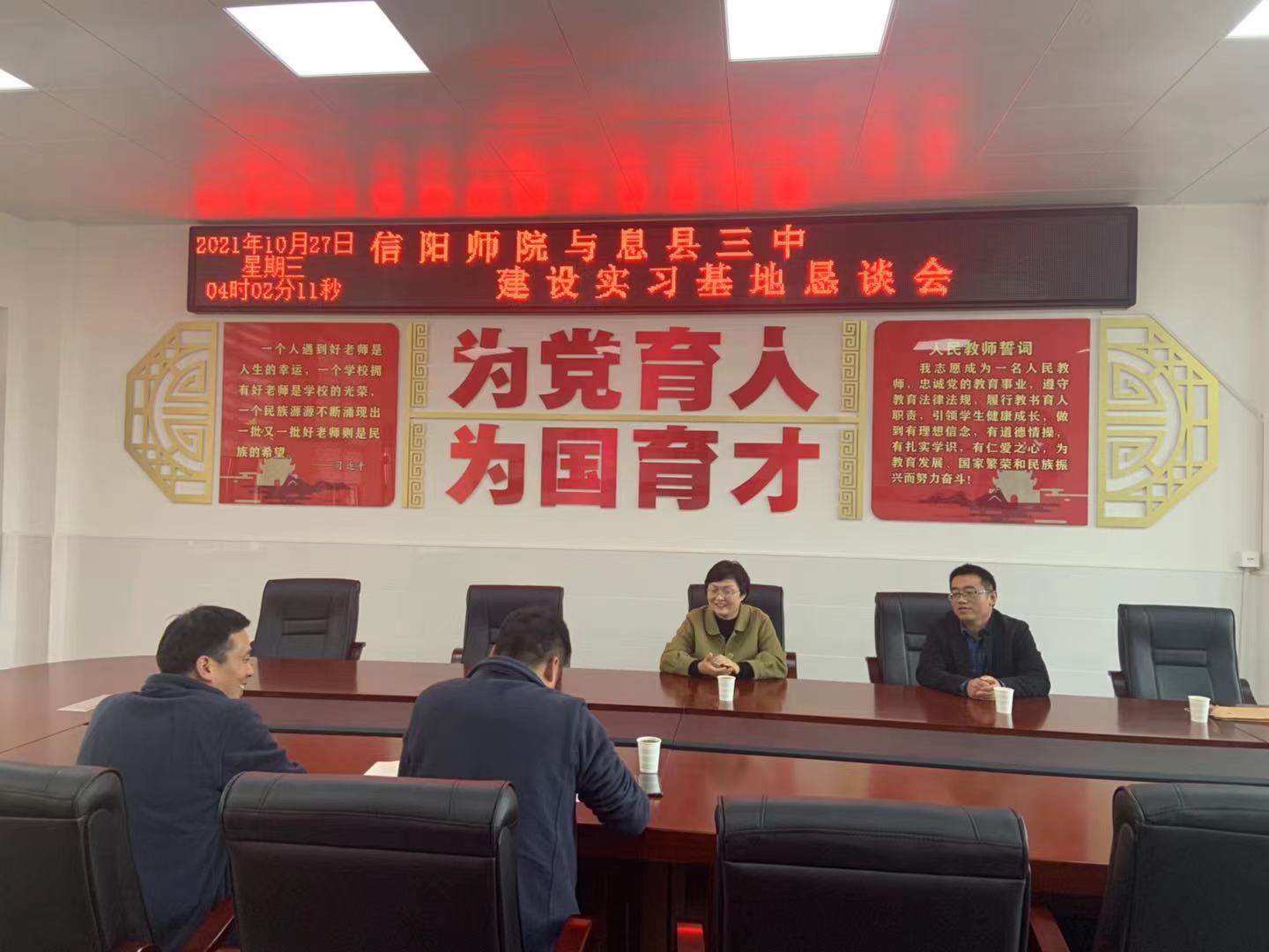 10月27日,信阳师范学院beat365官方网站代表beat365教务处,与息县五所中学顺利签署毕业生实习基地建设合作协议。