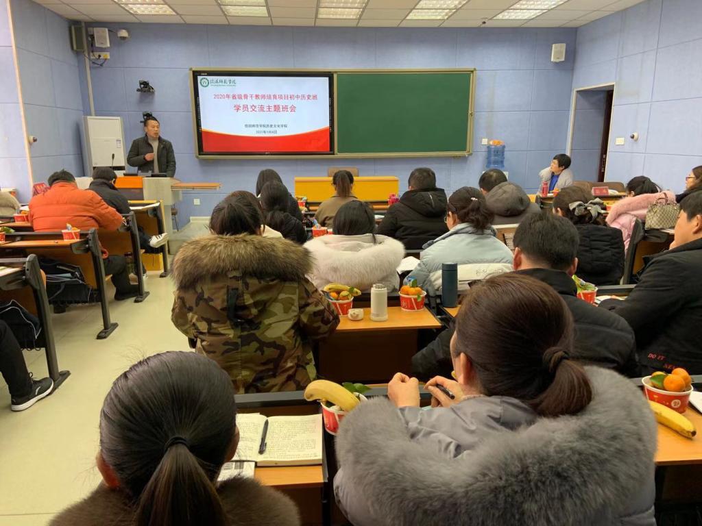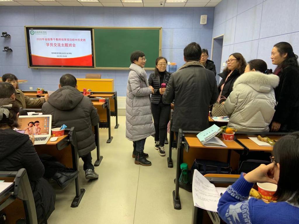 1月4号下午,2020年度“省级骨干教师培育项目”(初中历史)学员交流主题班会在人文楼706会议室召开。班会由beat365官方网站历史系主任兼本次培训学科班主任孙炜主持。