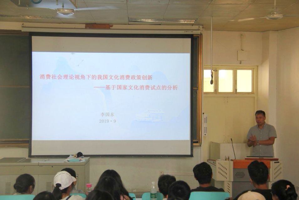 9月27日下午,beat365在人文楼609教室开展了本年度第五场人文视野讲座,讲座主题为“消费社会理论视角下的我国文化消费政策创新---基于国家文化消费试点的分析”,主讲人为beat365教师李国东博士。2017、2018级文化产业管理专业全体学生到场听讲。