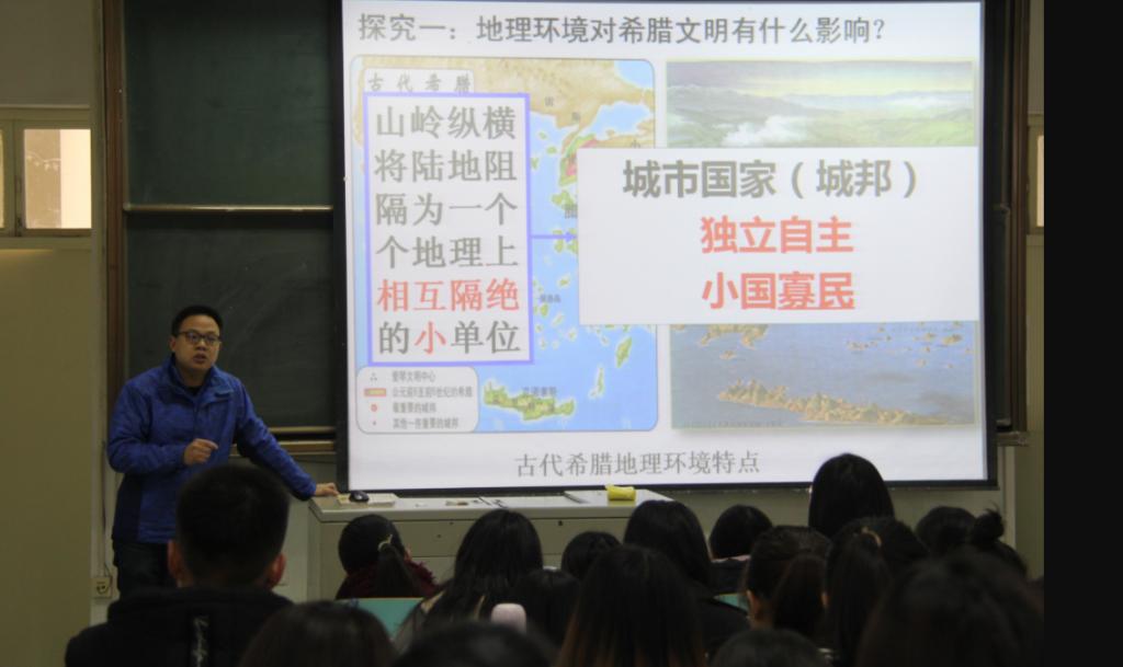 王威老师以高中历史课本(人教版)必修一第五课——古代希腊民主政治为例进行示范课讲授。他从奥运会的发源地导入课题,介绍雅典文明是西方文明的摇篮,并对雅典民主政治的确立、特点及直接民主的弊端进行了具体的说明。随后,他就“民主制度”做了中西对比,并对接高考相关知识点进行深入讲解,使同学们更深刻地理解了雅典文明的独特性。