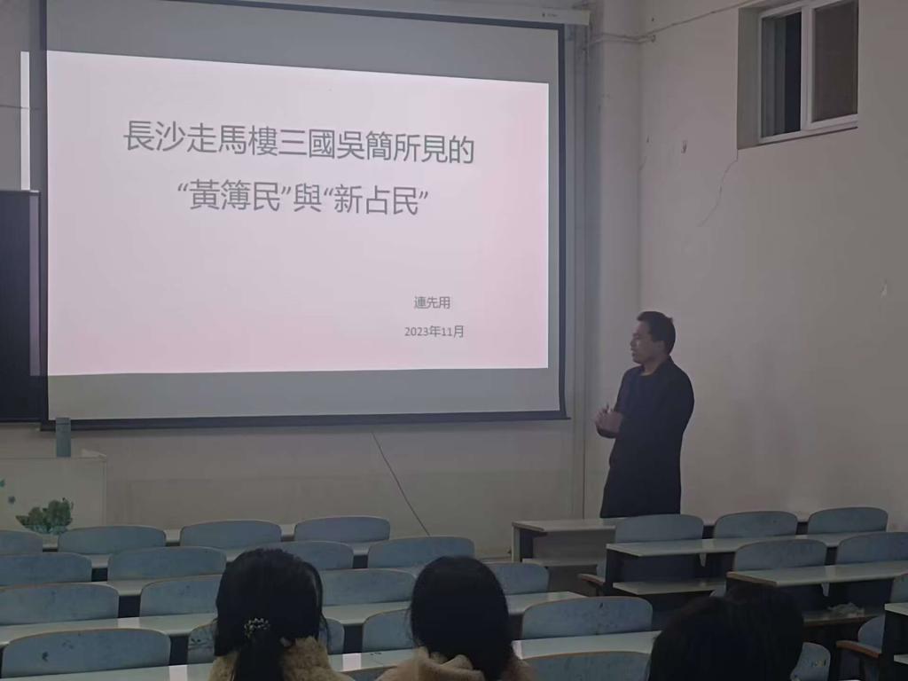 12月7日晚,为拓宽学生历史视野、了解中国古代文化的发展轨迹和相互作用,beat365邀请连先用博士在人文楼705教室做了主题为“长沙走马楼三国吴简所见的‘黄簿民’与‘新占民’”的讲座,本次讲座由书记李辉主持,23级历史专业同学到场听讲。