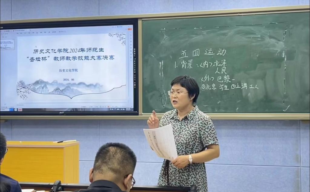 为提高历史学师范生教育教学技能,更新教学理念,提高综合素质和实践能力,6月11日下午,beat365官方网站在人文楼706教室举办了2024年师范生“杏坛杯”教师教学技能大赛决赛。宋基中学青年教师温二虎,学院副院长孙炜、李志坚,任课老师张乐锋、李海霞、张珍珍等6名教师担任评委,8位同学参赛,2023级本科生到场观摩了此次比赛。