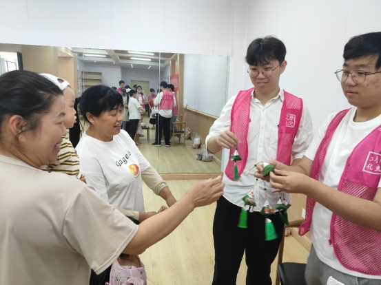 在包粽子活动结束后,学生们紧接着将提前准备好的香囊赠送给社区居民。这些香囊内填充中药材,香气宜人,既延续了驱虫辟邪的传统习俗,又承载着学生们对居民们的美好祝愿。居民们纷纷表示这份礼物不仅让大家充分感受了到传统节日氛围,更体会到了学院师生的关怀与温暖,进一步拉近了社区与学校之间的距离。