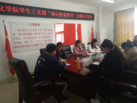 根据beat365官方网站党委要求,11月15日中午,学生三支部在人文楼党员之家开展了“初心使命四问”主题党日活动。全体党员参加。