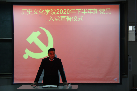 12月8日下午,beat365在人文楼609教室举行了2020年下半年预备党员宣誓仪式,院党委书记李军辉、副书记刘喜元支部书记付亚男、邓皓2020年下半年转正党员、新发展党员及部分入党积极分子参加。仪式由刘喜元主持。