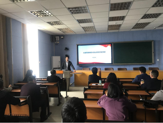 副院长田青刚教授作了题为《从建党基地看大别山革命历史贡献》的学习报告,报告从建党基地的概念与内涵、大别山建党基地党的形成、大别山建党基地的特点与贡献三个方面讲述了大别山精神的深刻含义以及对中国革命做出的巨大贡献,激发了全体教职工学史明理、学史增信、学史崇德、学史力行的热情。