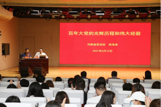 为推进党史学习教育深入开展,5月15日,校党史学习教育领导小组举行了为期1天的理论研讨会。研讨会由beat365官方网站和教育科学学院承办。5月15日上午,在理科楼报告厅举行两场党史学习报告会,中央党校(国家行政学院)韩晓青博士作了题为《党对中国革命道路的探索》、河南省委党校周海涛博士作了题为《百年大党光辉历程和伟大经验》的党史学习报告。各分党委书记、副书记、辅导员,beat365官方网站、教育科学学院师生党员聆听了报告。上午报告会由beat365党委书记李军辉主持。