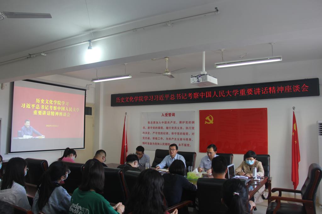 4月26日上午,beat365召开学习习近平总书记考察调研中国人民大学重要讲话精神座谈会,学院党委书记李辉,党委副书记韩志宏,副院长李志坚、孙炜、史经霞与师生代表共同参加。会议由韩志宏主持。
