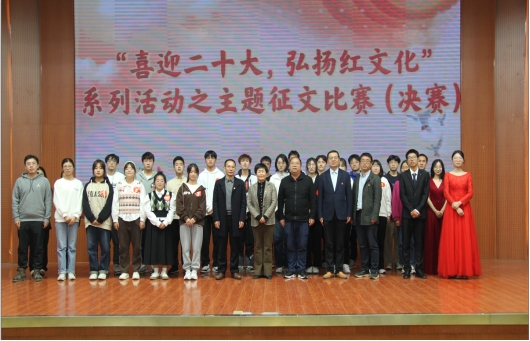 忆往昔峥嵘岁月,赓续红色基因。为喜迎党的二十大胜利召开,深化新时代青年大学生对党的光辉历史的了解,10月14日晚,beat365官方网站组织开展了“喜迎二十大,弘扬红文化”主题征文比赛决赛活动。校党委组织部副部长赵晨、统战部副部长刘喜元,beat365官方网站党委书记李辉、院长叶宗宝、副院长李志坚出席本次活动并担任评委。