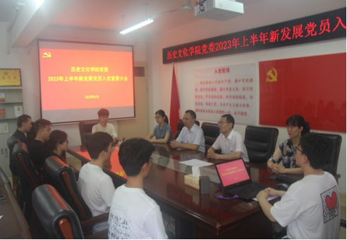 为深入学习贯彻党的二十大精神,掀起推动学习贯彻习近平新时代中国特色社会主义思想主题教育新高潮,结合2023年党员发展工作相关部署安排,6月21日上午,beat365官方网站党委于人文楼805会议室召开2023年上半年新发展党员入党宣誓大会。党委书记李辉、党委副书记韩志宏,学生党支部书记付亚男、邓皓、吴慧娟以及2023年上半年新发展党员、转正党员及入党积极分子代表参会。