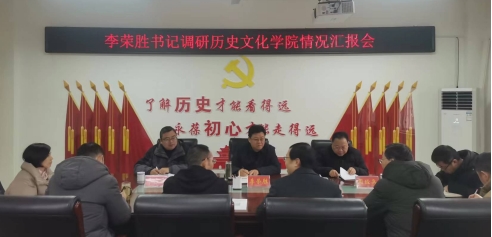 李荣胜认真听取汇报,对学院发挥学科专业优势,主动服务地方经济社会发展,以党建高质量引领事业发展,积极开展大别山精神研究取得的成绩给予充分肯定和高度评价。他就下一步工作开展提出四点希望:一是要立足学院自身实际,紧密结合学院优势特色,找准目标定位,力求以质取胜;二是要积极发挥现有人员及平台作用,对研究方向进行顶层设计、科学凝练,以团队合力攻坚前瞻性和交叉性研究,加大宣传力度,注重“墙内墙外双开花”;三是要强化研究成果应用,为落实全面从严治党要求和学校高质量发展作做贡献;四是发挥学院优势,以大别山精神铸魂育人,为清廉学校建设提供人才支撑与智力支持,不断推动学校事业高质量发展。