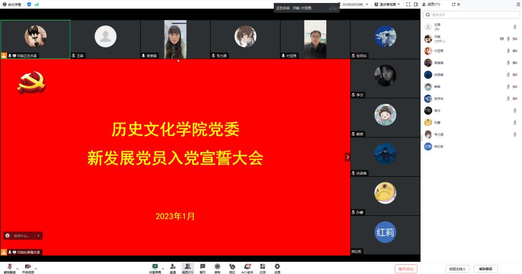 会上,付亚男宣读了2022年下半年新发展党员名单,吴慧娟宣读了2022年下半年转正党员名单。随后全体党员在邓皓带领下面向党旗庄严宣誓。
