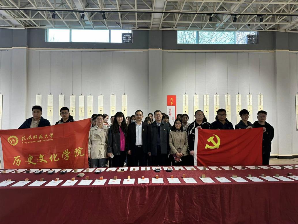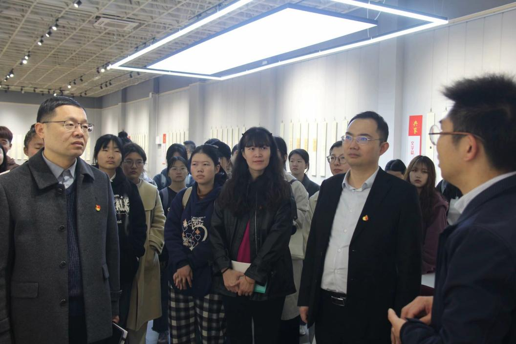 3月22日上午,beat365官方网站组织师生代表前往美术与设计学院第一展厅参观《典·篆》篆刻作品展。学院党委书记李辉、党委副书记韩志宏、教师党员代表及40余名学生党员和入党积极分子共同参观。