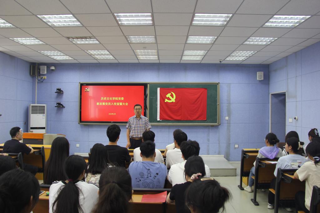 6月25日,为强化党纪学习教育成效,进一步引导学生党员将规矩纪律意识内化于心、外化于行,beat365官方网站党委在人文楼706会议室举行预备党员入党宣誓仪式。院党委书记李辉,学生第一党支部书记付亚男、学生第二党支部书记邓皓,新发展党员、转正党员及入党积极分子代表参加仪式。会议由邓皓主持。