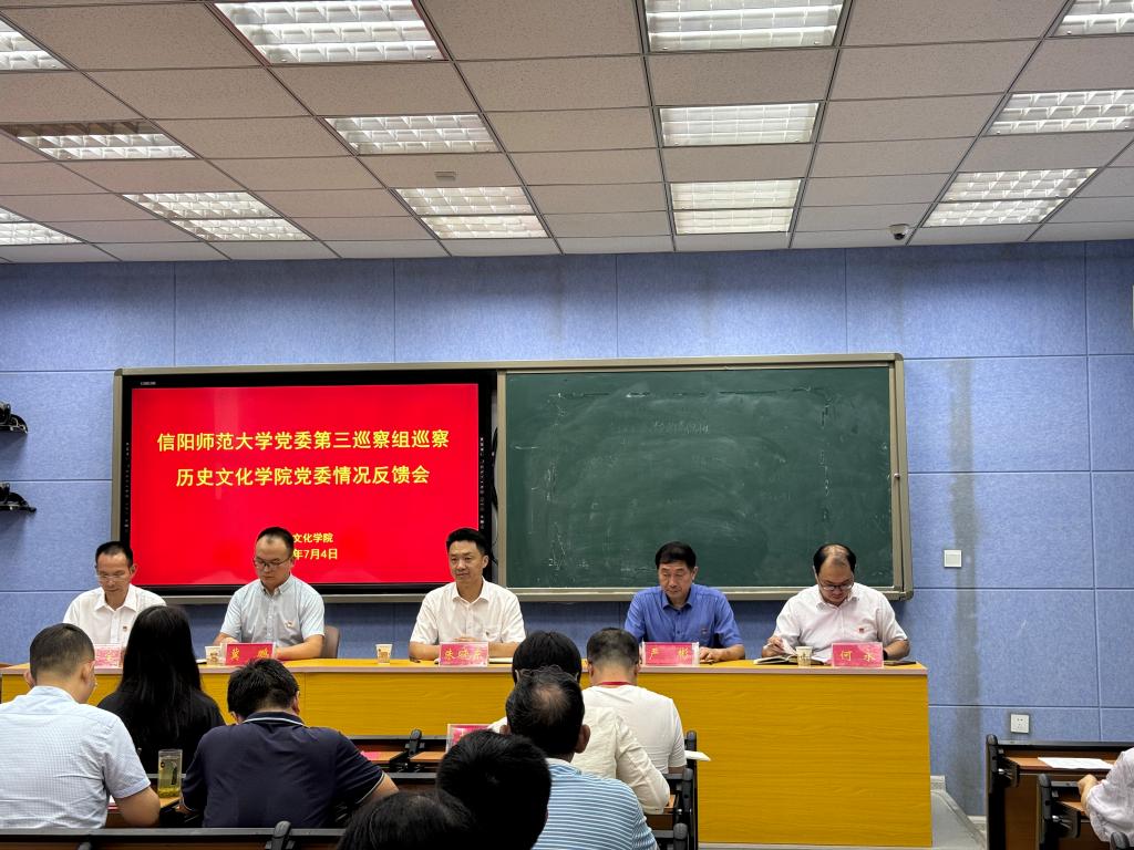 7月4日,校党委第三巡察组巡察beat365官方网站党委情况反馈会在人文楼706会议室召开。反馈会上,副校长朱晓东对巡察整改工作提出要求,第三巡察组组长严彬反馈了巡察情况。beat365官方网站党委书记何永就做好巡察整改工作作表态发言。第三巡察组全体成员、巡察办工作人员、学院领导班子成员、全体教职工、离退休教职工代表和学生代表参加会议。会议由院长叶宗宝主持。