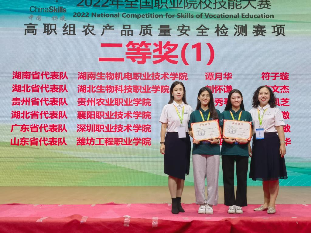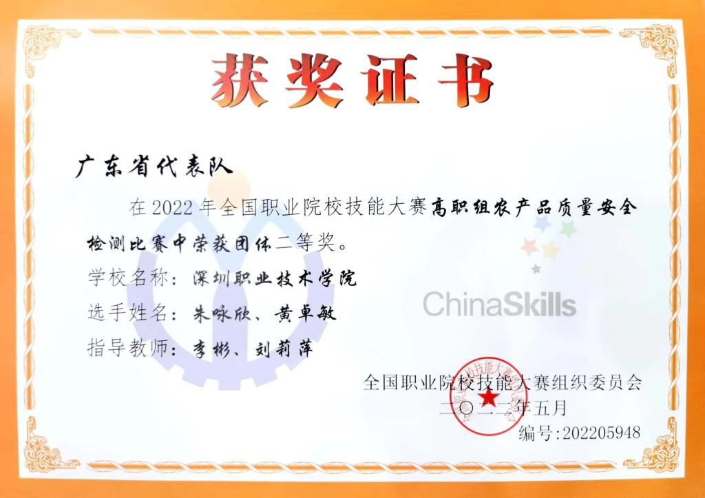 8月24日至26日,由教育部等部门主办的2022全国职业院校技能大赛“农产品质量安全检测”赛项在陕西杨凌举行。经过激烈角逐,由伟德官网伟德bv国际体育朱咏欣、黄卓敏2名学生组成的广东省代表队,在本次赛项中取得了二等奖的好成绩。