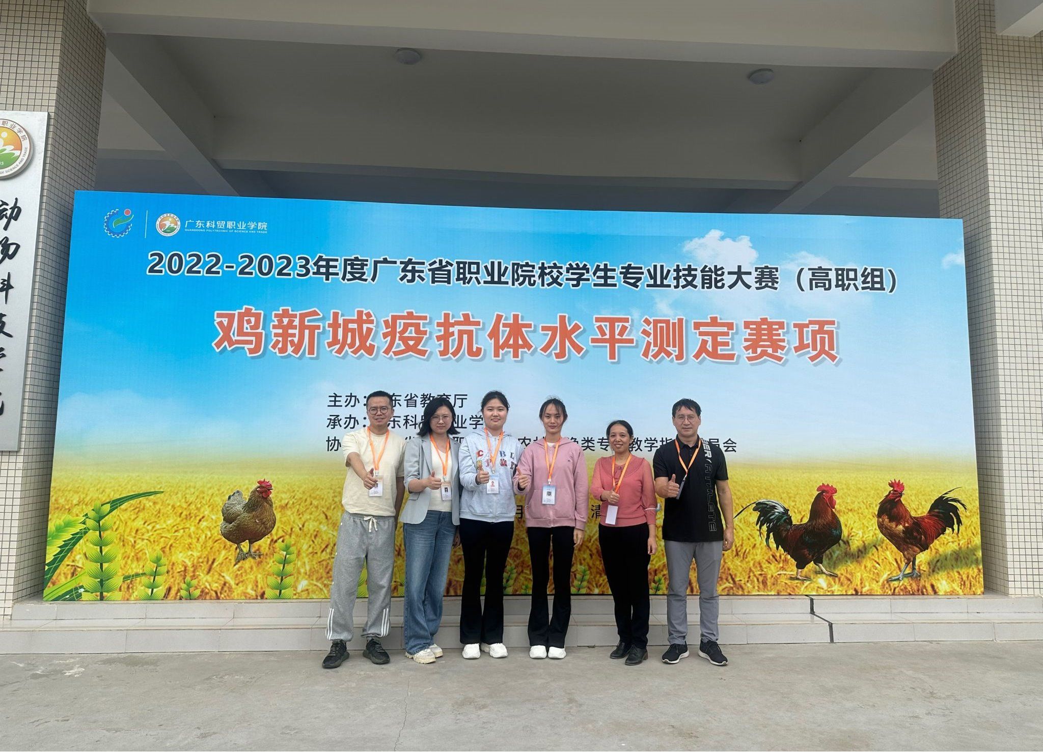 4月14-15日,由广东省教育厅主办、广东省高等职业院校农林牧渔类专业教学指导委员会和广东农业职业教育集团协办的2022-2023年度广东省职业院校学生专业技能大赛(高职组)鸡新城疫抗体水平测定赛项在广东科贸职业学院清远校区举行,来自全省16所高职院校的32支参赛队伍,计120多名师生参加了本次比赛。由伟德官网伟德bv国际体育欧阳紫君、张丽君老师指导的21药学古晓曼、牛冰钰同学获一等奖,唐勇军、贺乾老师指导的21药学唐闽娟、朱悦同学获二等奖。
