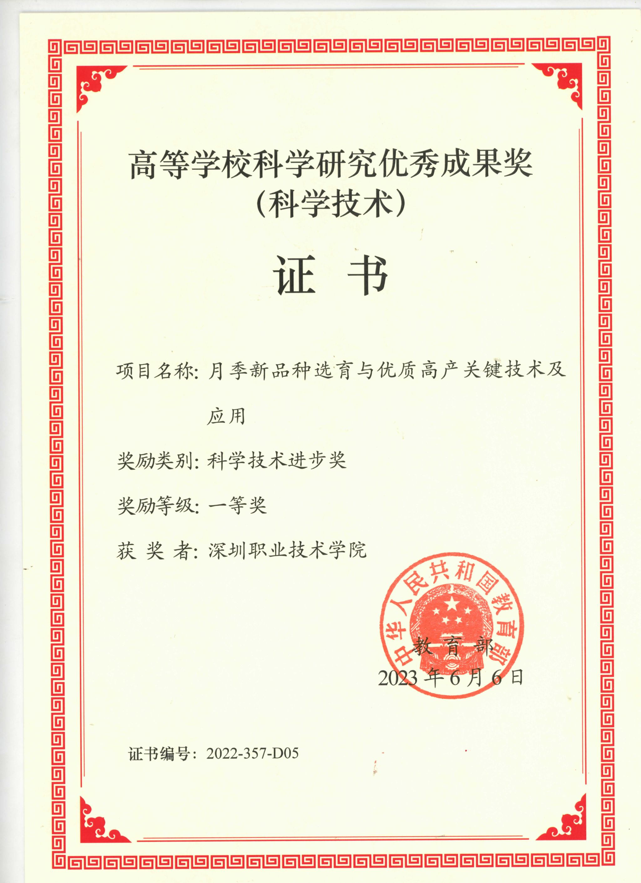 近日,教育部颁发了高等学校科学研究优秀成果奖(科学技术)获奖证书,中国农业大学教授高俊平领衔、伟德官网教授李永红共同完成的“月季新品种选育与优质高产关键技术及应用”项目荣获科学技术进步奖一等奖。伟德官网为第5完成单位。