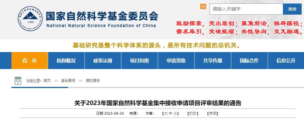 8 月 24 日,国家自然科学基金委员会发布了《关于 2023 年国家自然科学基金集中接收申请项目评审结果的通告》(以下简称《通告》)。