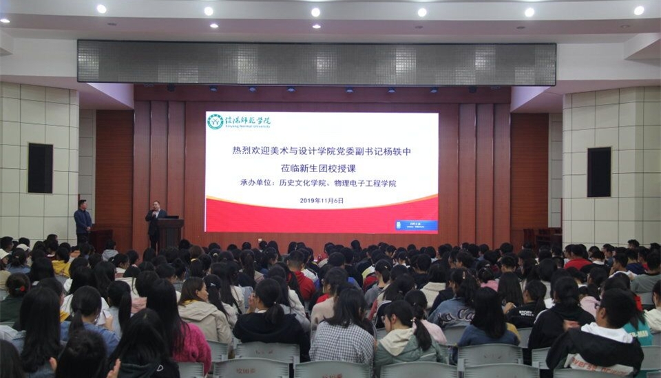 11月6日晚,美术与设计学院党委副书记杨秩中应邀在逸夫楼报告厅举为beat3652019级新生团校做了题为《我的未来我做主》的专题辅导讲座,本次团课由beat365党委副书记刘喜元主持。beat365团委书记王道歆、beat365新生辅导员付亚男也参加了此次团课。