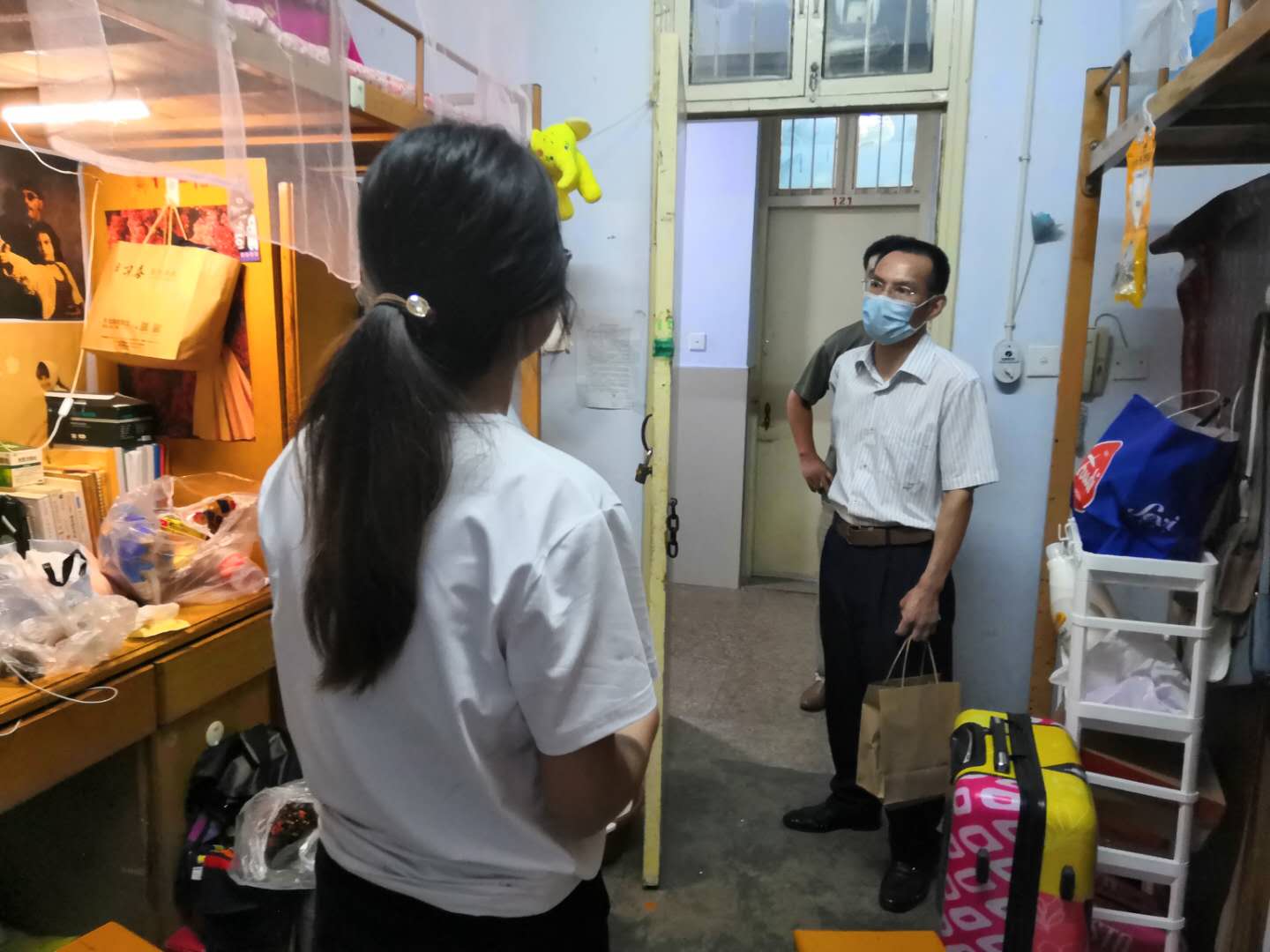 6月8日,beat365迎来151名2020届返校毕业生。为贯彻落实精准防控工作,全力确保返校学生身心安全健康,beat365党委书记李军辉,院长尹全海,副院长田青刚、叶宗宝、余纪珍,党委副书记刘喜元及班主任、辅导员走访学生宿舍,与学生亲切交谈,并为家庭困难学生送上“防疫爱心包”。