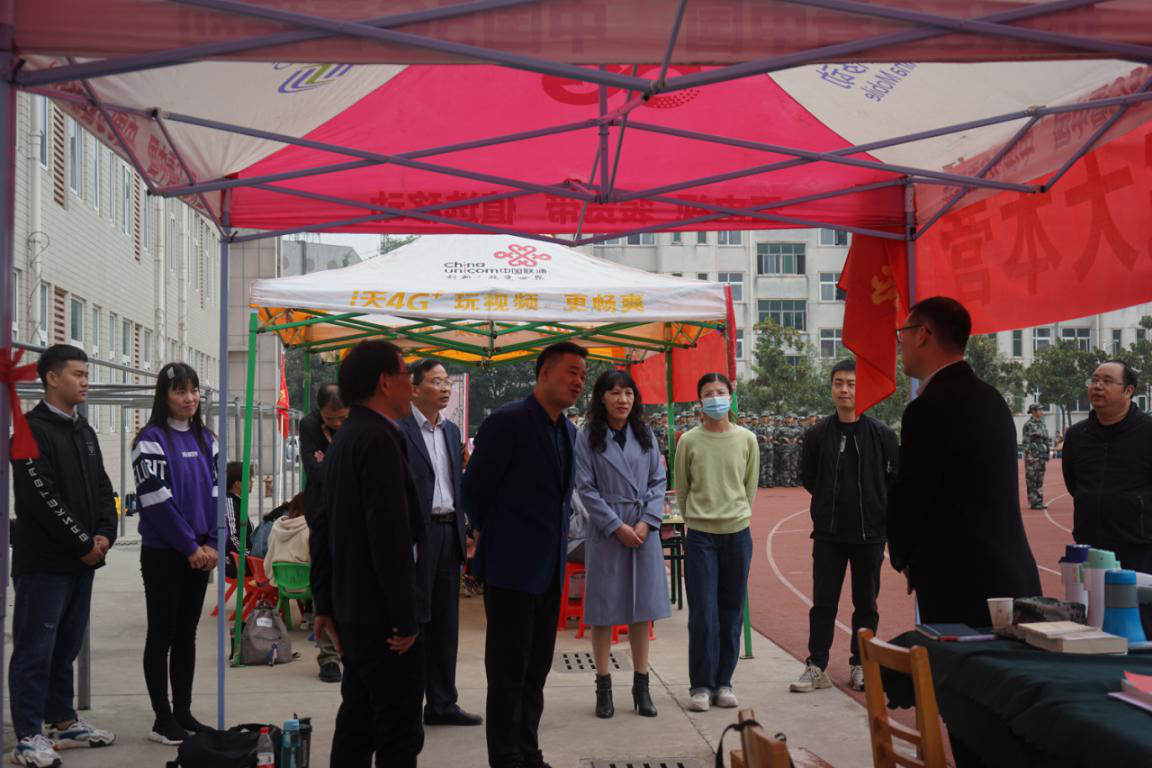 领导询问了新生军训工作的进展情况,实地查看了各连队训练情况,详细了解了学生的身体状况以及学生在训练过程中遇到的问题和困难;领导对教官的悉心指导表示感谢,对新生刻苦训练的精神风貌给予充分肯定;领导们还看望了在服务站值班的后勤人员,并对他们提出要求,希望大家做好后勤保障工作,确保军训顺利进行。