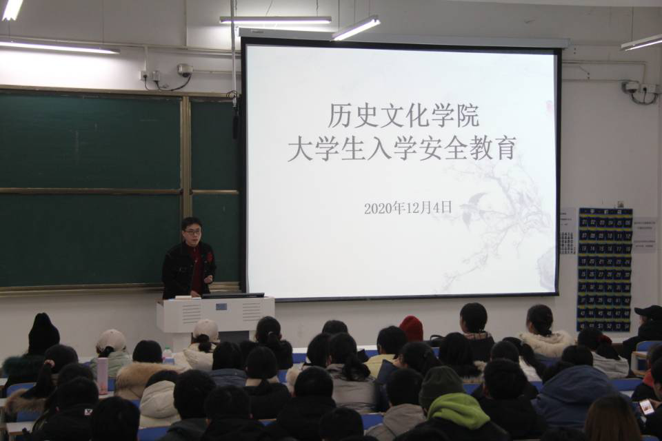 12月4日晚,beat365在社科楼212教室举办大学生入学安全教育活动,beat365辅导员邓皓老师主讲,2020级全体学生参加。