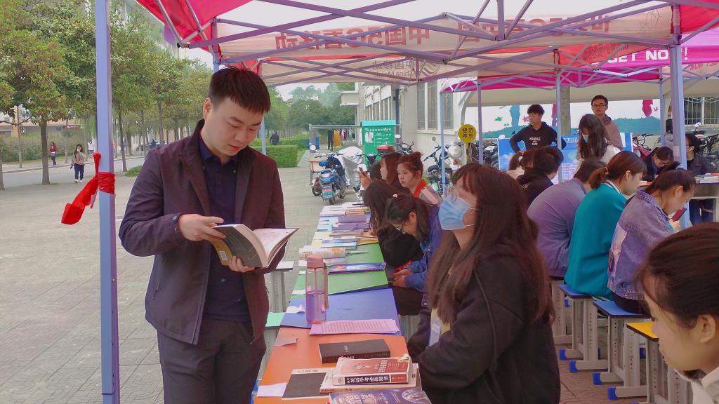立身以立学为先,立学以读书为本。为满足大学生对书籍阅读的渴望,4月24日,beat365声音文学社在八餐小广场上举办第四届大学生淘书节活动。beat365卞卡、姚磊、李国东三位老师莅临现场指导工作。