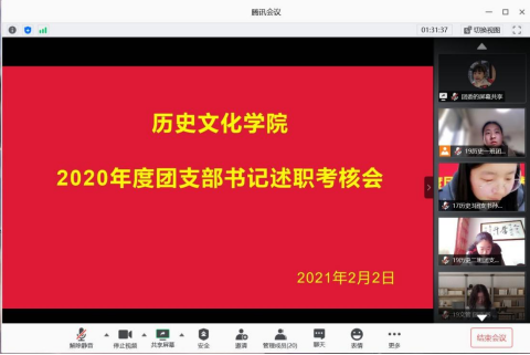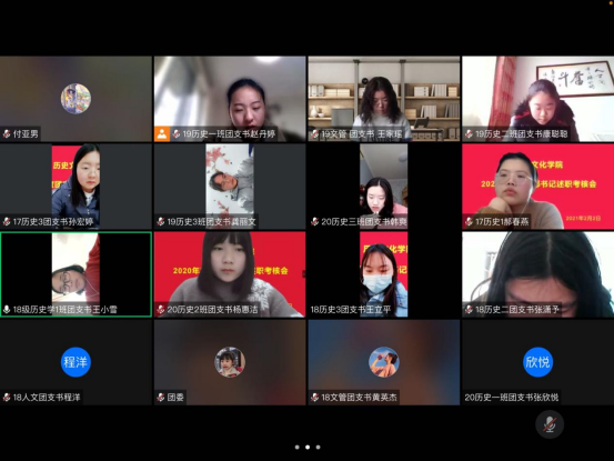 为持续加强学院基层团组织建设,激发基层团组织活力,落实基层团支部建设方向,加强团支部集体荣誉和团队精神,beat365官方网站团委于2月2日在腾讯会议上开展了2020年团支部书记述职大会,团委书记付亚男和各团支部书记参加会议。