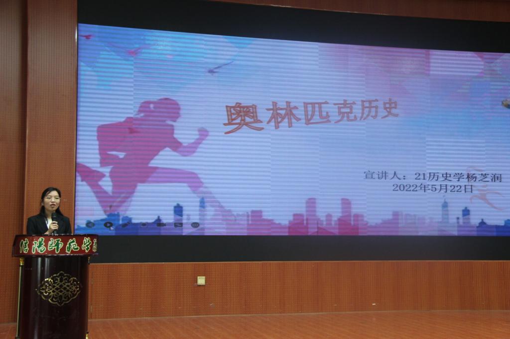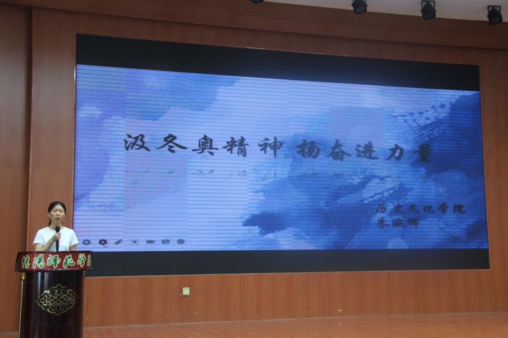 比赛在婀娜多姿的舞蹈《礼仪之邦》中缓缓拉开序幕。现场,选手们结合精美的PPT依次登台展示,有的讲述了新世纪到来,奥运会的发展历程,让人心神激荡;有的讲述了精彩奥运故事,让人斗志昂扬,有的讲述了冬奥会盛况,让人热血沸腾……他们激动人心的演讲赢得场下观众阵阵掌声。比赛展现了学子们昂扬向上的精神面貌,拼搏向上的青春朝气,积极乐观的人生态度。比赛最后,李辉进行点评,指出广大青年要在青春的赛道上奋力奔跑,争取跑出当代青年的最好成绩,并寄语学子们要加强体育锻炼,增强个人体魄,促进身心健康发展,培养坚韧意志,争做堪当民族复兴大任的时代新人。最终,经现场评委打分,成奕东获得一等奖,向新民、景慧颖获得二等奖,王红琰、杨芝润、朱婉辉获得三等奖。