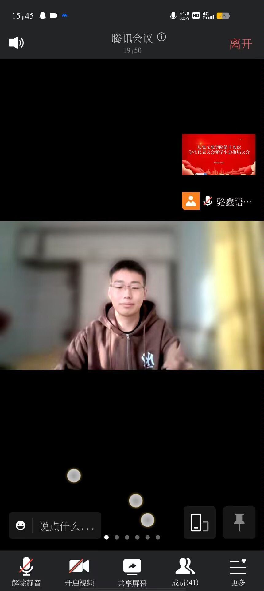 12月14日下午,beat365于腾讯会议召开第十九次学生代表大会暨学生会换届大会,学院党委副书记韩志宏,团委老师付亚男、吴慧娟、邓皓,学生会候选人员和学生代表共同参会。