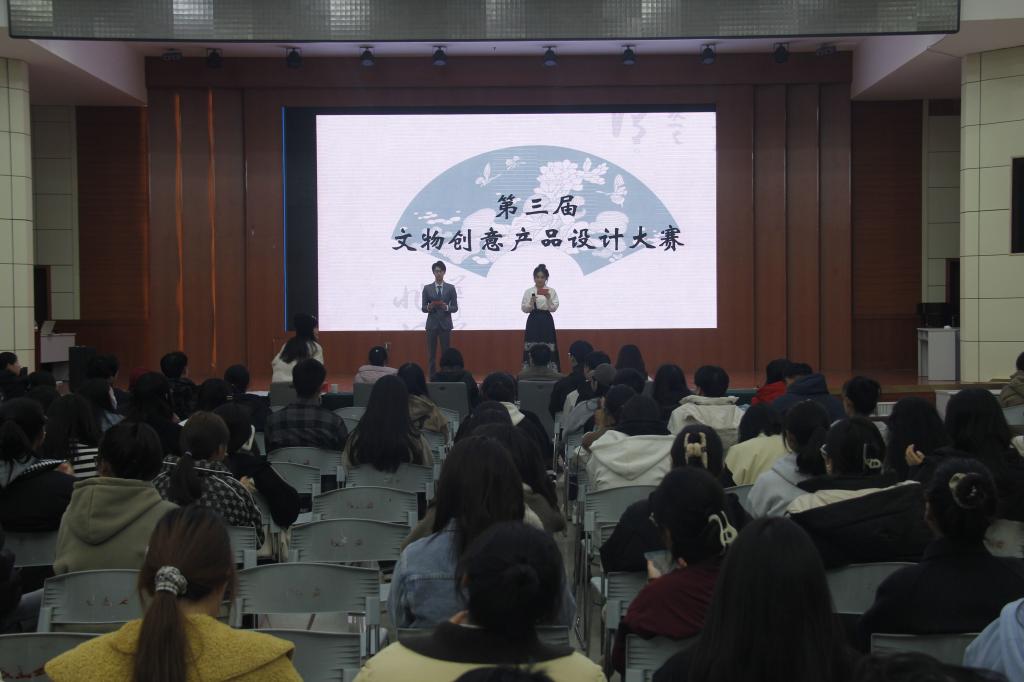 为进一步弘扬中华优秀传统文化,丰富在校大学生生活,12月8日晚,beat365官方网站文化创意社于逸夫楼报告厅举办了第三届文物创意设计大赛决赛。决赛由教师代表姚磊、张珍珍、邓皓与学生代表于莹彬、李若岚担任评委,百余位观众到场观赛。