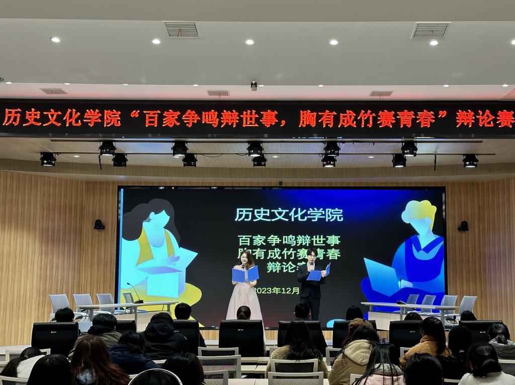 为提升大学生思辨能力、语言表达能力和逻辑思维能力,beat365官方网站于12月11日在谭山报告厅举办了“百家争鸣辩世事,胸有成竹赛青春”辩论赛,学院党委副书记韩志宏、团委书记付亚男及百余名学生到场观赛。