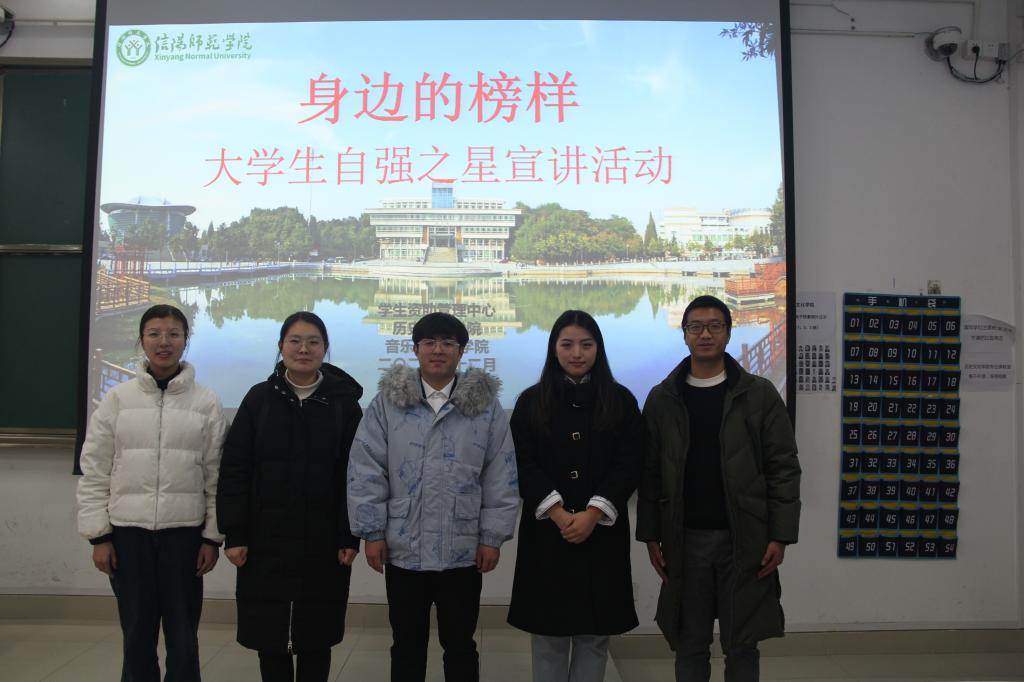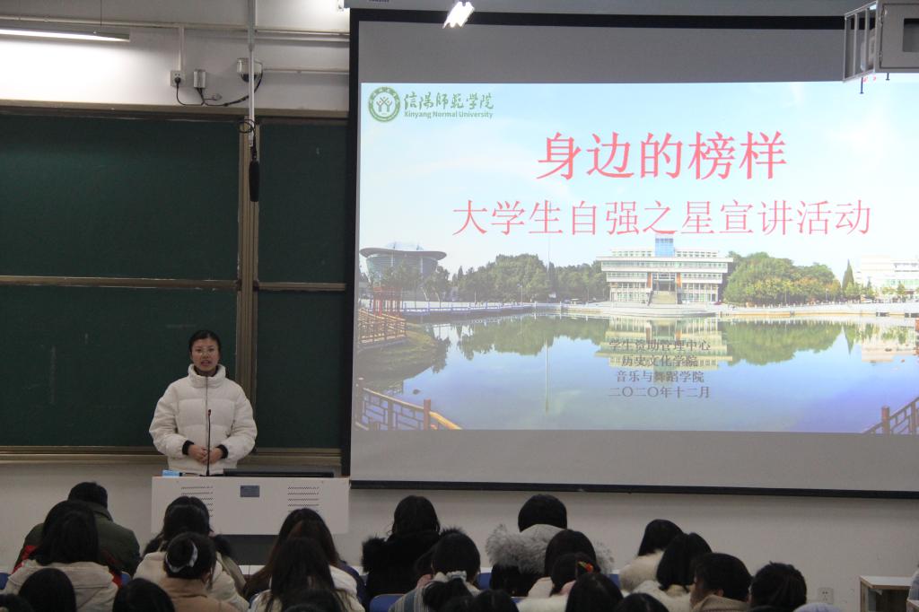 12月16日晚,beat365于社科楼212教室举办“身边的榜样”—大学生自强之星宣讲活动。传媒学院“国家奖学金”获得者张润嘉、马克思主义学院“自强之星”贾雨晴及文学院“自强之星”李国栋向beat3652019级、2020级学生分享他们的成长故事。本次活动由beat365资助专员付亚男主持。