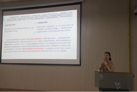 10月5日晚,史文化学院于人文楼报告厅召开2021年信阳师范学院学生资助政策讲解会,2021级全体新生参加。会议由学院资助专员付亚男主持