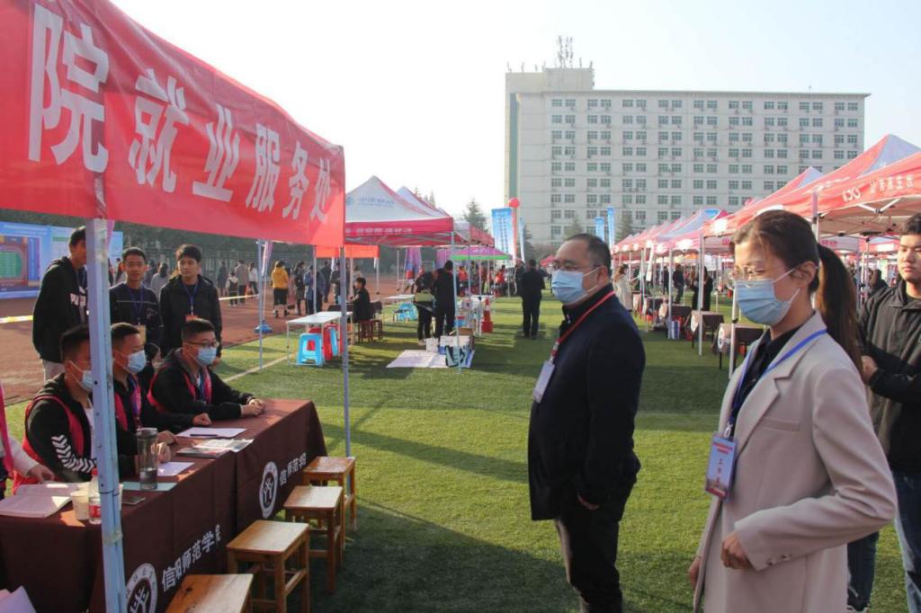 11月7日,由河南省教育厅主办,信阳师范学院承办的“河南省毕业生就业市场豫南分市场暨信阳师范学院2021届毕业生线下冬季双选会”在beat365西操场举行。beat365在现场设有就业服务站,为招聘单位和beat365毕业生提供便利服务。