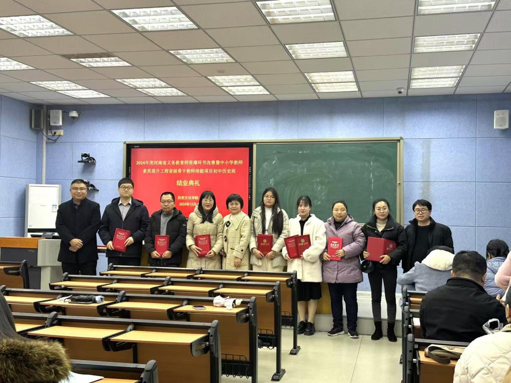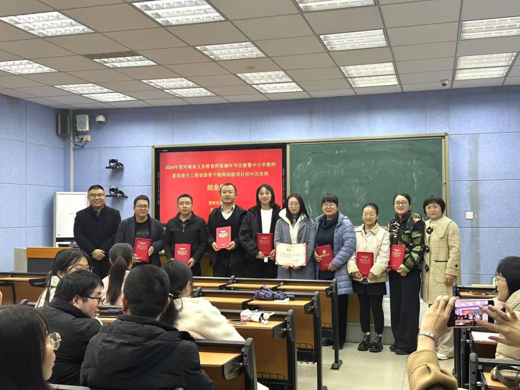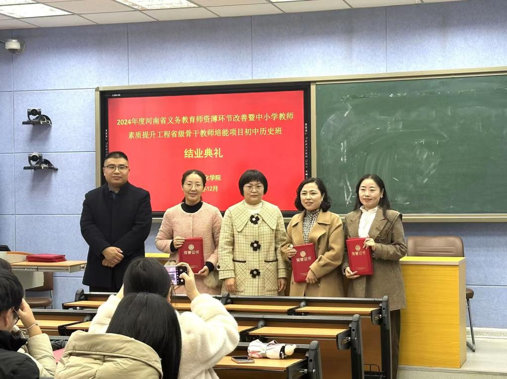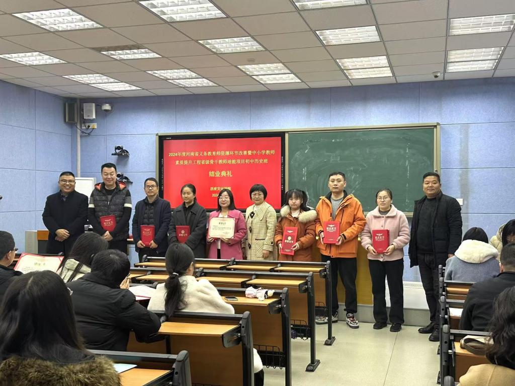 12月4日上午,beat365承办的2024年度河南省义务教育师资薄环节改善暨中小学教师素质提升工程省级骨干教师培能项目初中历史班结业仪式在人文楼706教室举行。副院长孙炜与来自全省各地市的近50名初中历史骨干教师参加。仪式由历史系主任张乐锋主持。