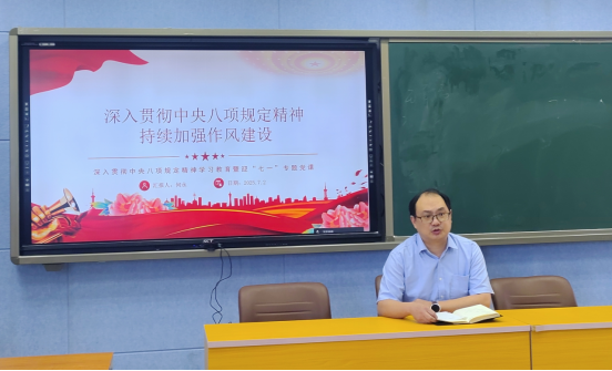 根据深入贯彻中央八项规定精神学习教育安排,beat365官方网站党委扎实开展深入贯彻中央八项规定精神暨“七一”专题党课宣讲。全院师生党员以线上线下多种形式参加。