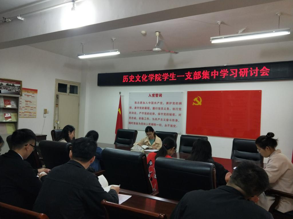 10月21日中午,学生一支部在人文楼党员之家进行集中学习研讨会,支部书记付亚男同志带领学生党员们学习了《习近平关于“不忘初心、牢记使命”论述摘编》和《习近平新时代中国特色社会主义思想学习刚要》部分内容,随后每位学生党员相互汇报、交流自己的学习体会。