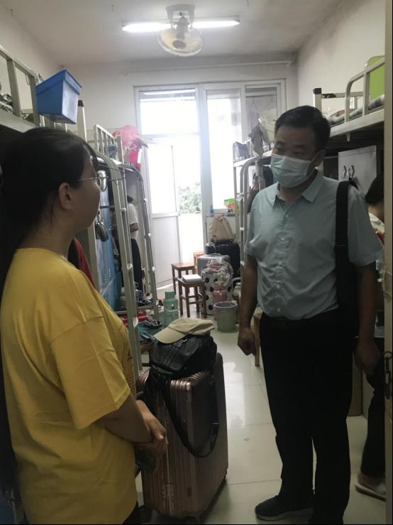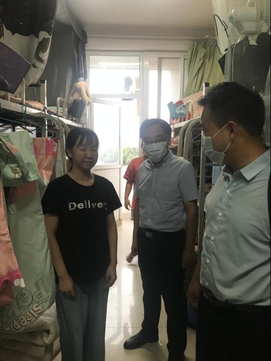 每到一个学生宿舍,学院领导都会与同学们亲切交谈,详细询问同学们的学习、生活情况,了解他们的假期安排和未来打算,并对返校期间需注意的防护事项及学习生活再一次进行要求和叮嘱。
