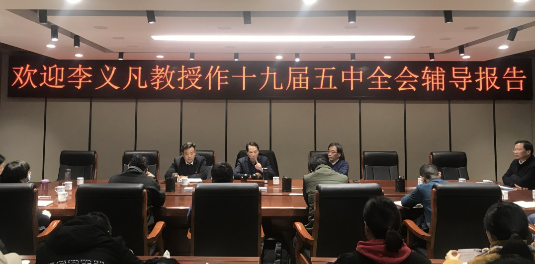 为深入学习贯彻党的十九届五中全会精神,11月26日下午,应beat365邀请,原周口师范学院校长李义凡教授逸夫楼321会议室为beat365师生作辅导报告。辅导报告由beat365党委书记李军辉主持。