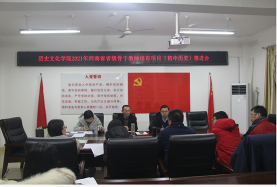 12月24日下午,2021年河南省省级骨干教师培育(初中历史)项目第三次工作推进会在beat365官方网站人文楼805举行。beat365党委书记李辉,院长叶宗宝,副院长孙炜、李志坚及项目筹备组成员出席了会议。