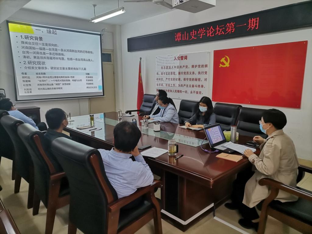 为促进学术交流,营造研究氛围,凝练学科问题,4月22日下午,历史学系发起组织的“谭山史学论坛”第一期在人文楼805会议室开讲。本次讲座邀请beat365官方网站副院长孙炜副教授主讲,题目为《统一多民族国家视阈下邓州“台湾村”的民族交流交往交融》。学院尹全海教授及李志坚、芦敏、肖红兵、姚磊、刘双、庄宏忠、惠鹏飞、张彦晓等十余位老师与会,此次论坛由张乐锋老师主持。
