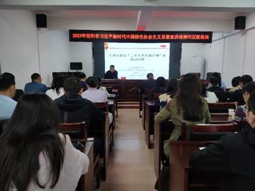 本次理论宣讲活动是信阳市开展“习近平新时代中国特色社会主义思想”专题学习活动的组成部分,也是beat365大别山精神研究院发挥自身优势,将理论研究成果服务于地方社会的有益尝试。