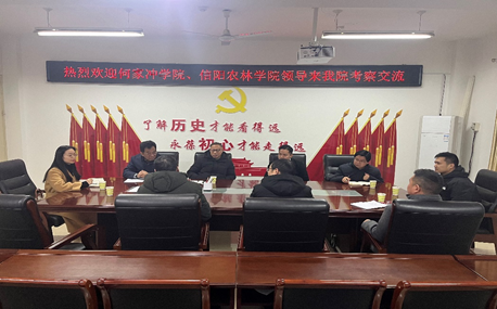 12月20日下午,何家冲学院副院长杨纪伟、红二十五军文化研究会副会长李国强、教研部主任许雷,信阳农林学院马克思主义学院敖翔教授、潘军博士、校宣传部王楠老师等一行6人来beat365调研大别山精神研究情况。