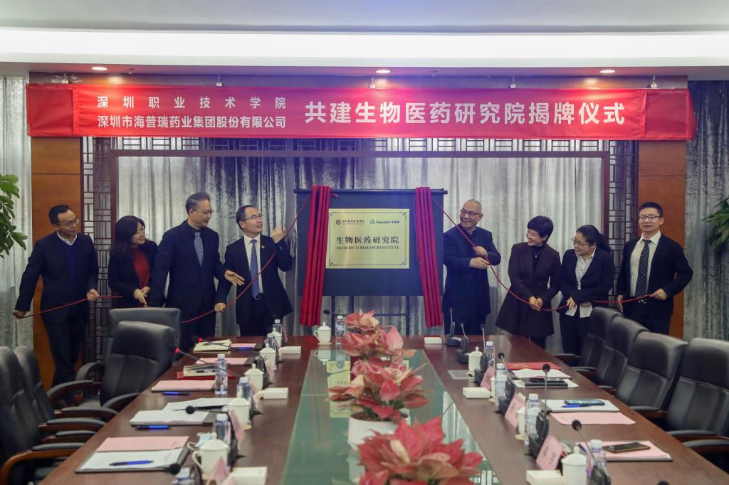 许建领在讲话中指出,生物医药是深圳市战略性新兴产业,中国已经成为医药行业全球最大的新兴市场,并一直保持持续增长态势。与此同时,创新型生物医药企业所需的人才缺口巨大。此次成立生物医药研究院,是学校与海普瑞将海普瑞生物医药学院合作共建走实走深的具体举措,也标志着双方合作进入新的阶段。希望生物医药研究院有效集聚双方优势资源,加强应用技术研发,助力伟德官网生物与医药高水平学科建设,共同打造国内生物医药领域职业教育校企合作的典范,为粤港澳大湾区生物医药产业发展提供强大的技术、人才与智力支持。