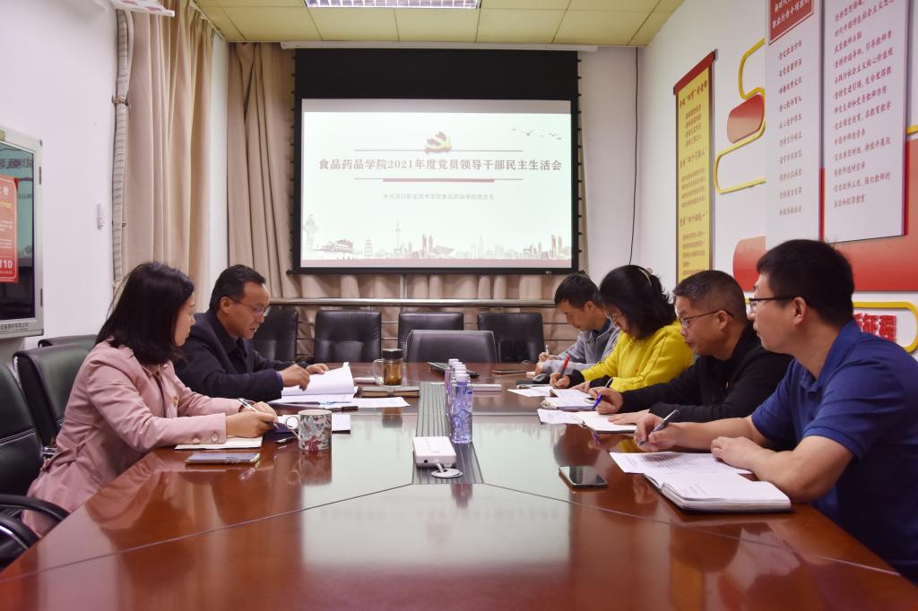 1月17日,食药学院在留仙洞校区知行园B座召开2021年度领导班子民主生活会。学校党委委员、外事处处长唐克胜到会指导,学院领导班子刘冬、李永红、段杰鑫、黄略略出席会议,学院党委委员曾永春、组织员林静选列席会议,会议由刘冬主持。