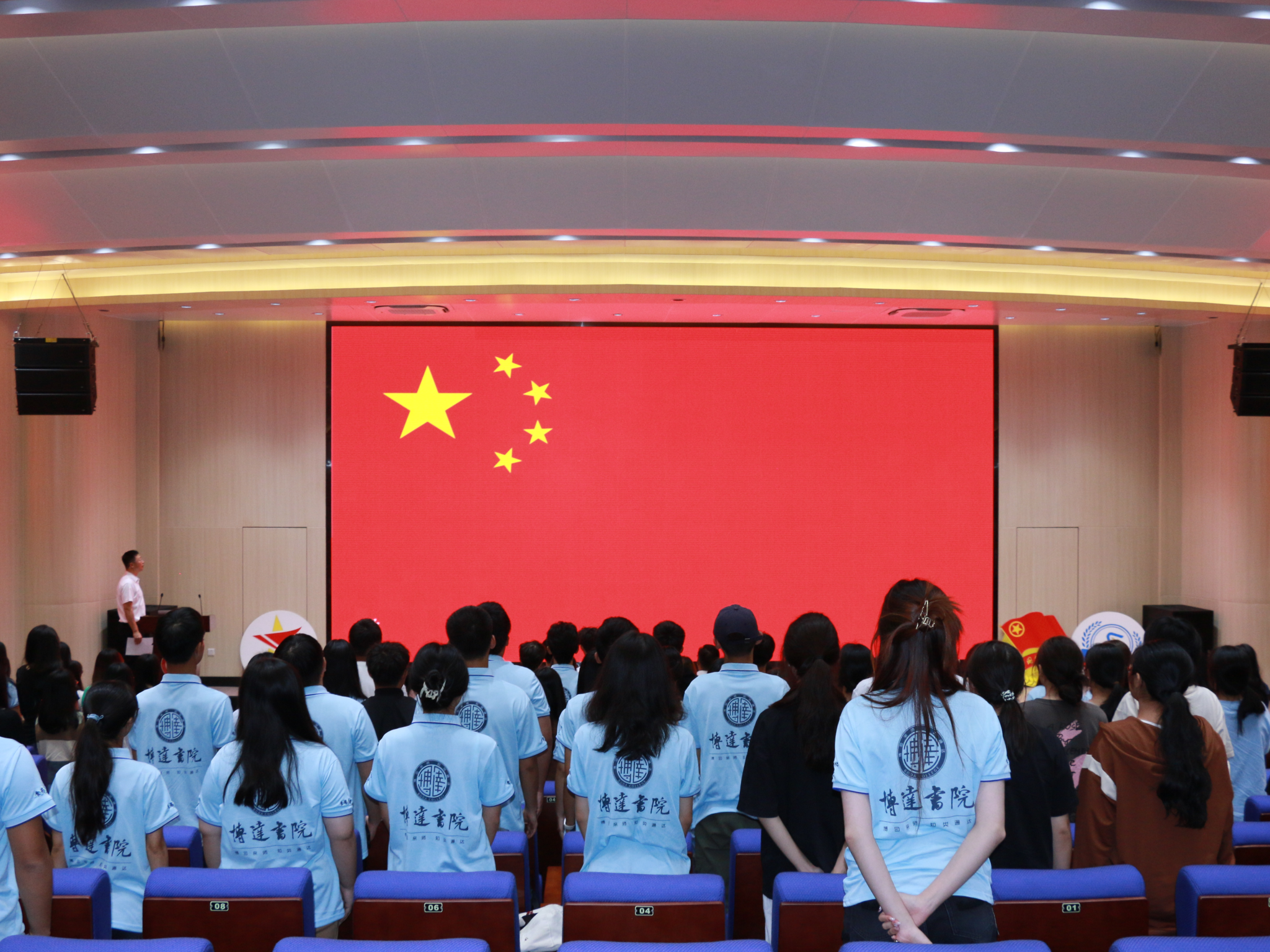 大会伊始,主持人段杰鑫为在场的所有学员介绍到场的学院领导和嘉宾,紧接着,全体参会人员起立,一同奏唱国歌。